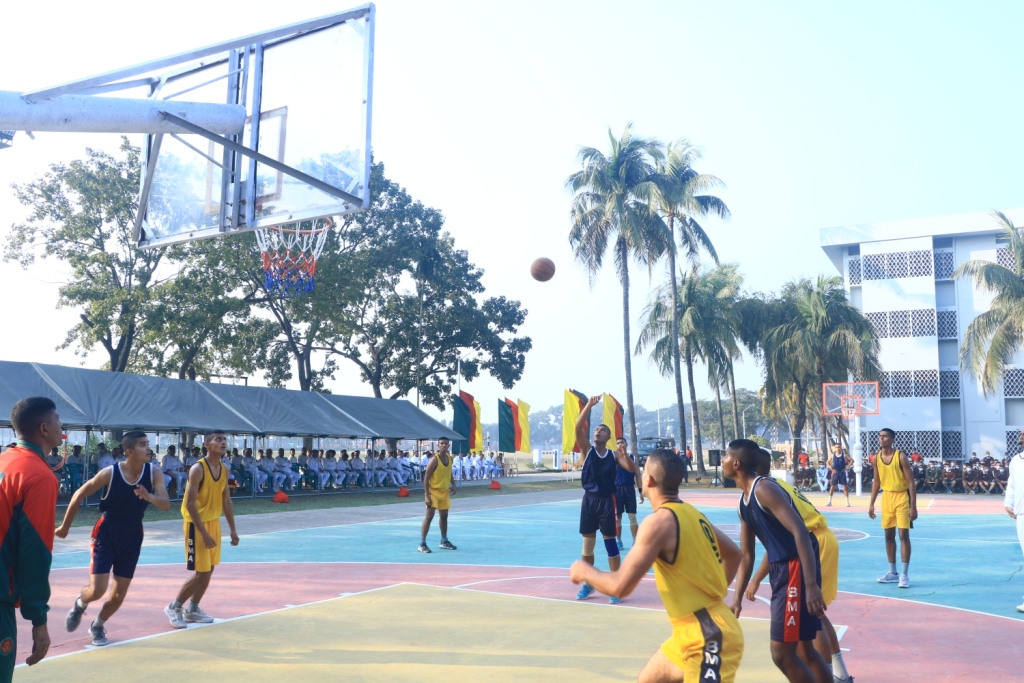 The basketball competition is organized every year in the Summer Term. It is held to foster interest in games and sports and to develop sportsmanship and competitive spirit amongst the cadets. It is an event where cadets of all terms participate.